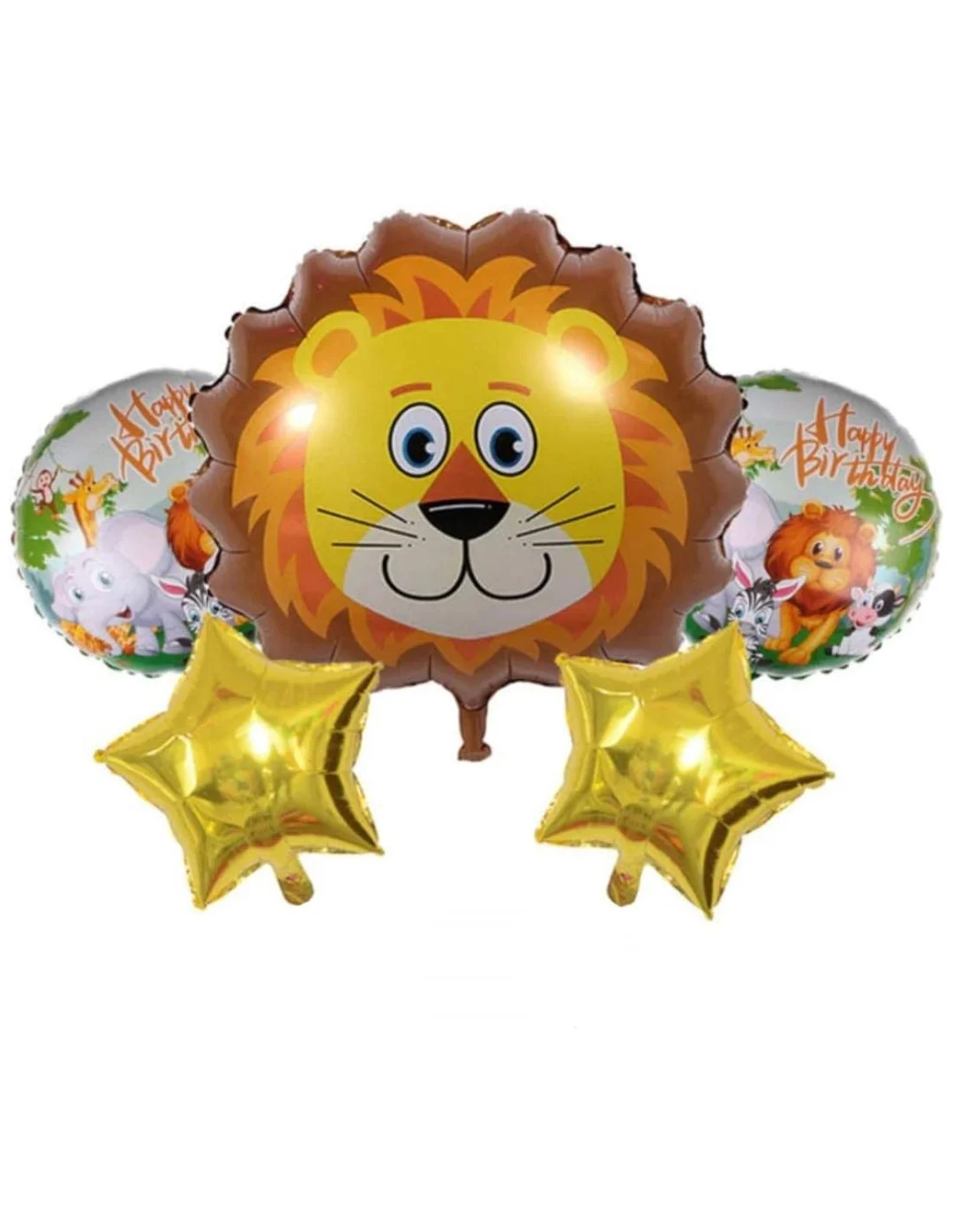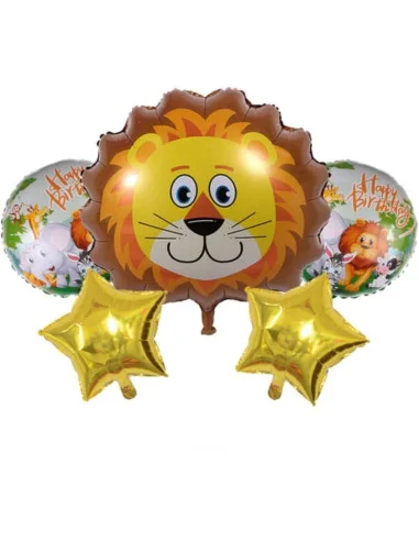 - Lot de 5 ballons : 5 superbes ballons dans un lot. 1 ballon lion, 2 ballons joyeux anniversaire animaux , 2 ballons étoiles