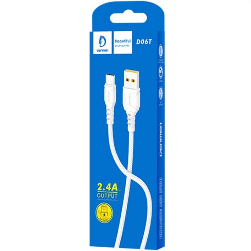 Câble USB vers Type C by denmen - Taille : 3,5 x 1000 mm Poids : 23 g-Courant maximal : 2,4 A-Prend en charge la charge et la synchronisation-Connecteur : broche en cuivre à deux extrémités avec plaqué or, test de brouillard salin 24 heures.