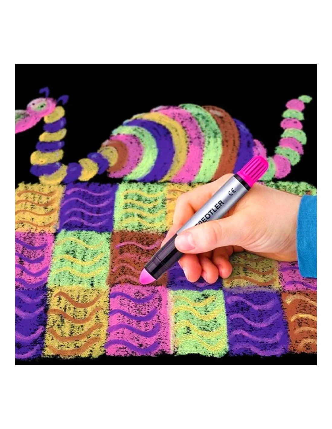Craies gel .Tourner et dessiner, tout simplement. Excellent pouvoir courant sur le verre, les surfaces lisses et les fo,ds sombres. Manipulation facile et propre .Adaptés aux mains des jeunes enfant. Super douces. Couleurs intenses. Grand résistance à la casse.
