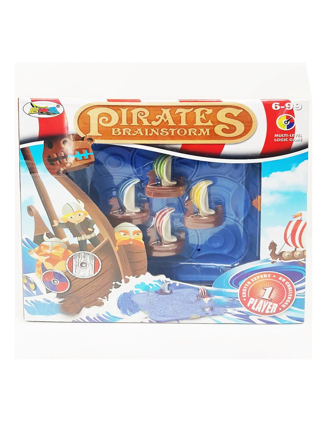 Le jeu contient - un plateau de jeu, 4 navires, 9 pièces tournantes et un livre avec 60 tâches.