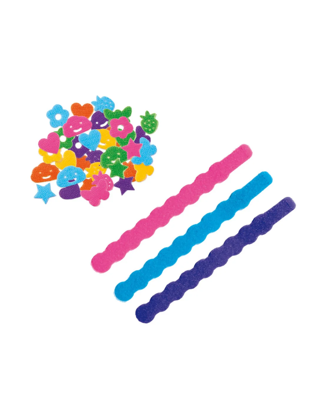 Décorer tes propres bracelets n’a jamais été aussi simple. Ce kit SES est spécialement conçu pour les enfants âgés de 3 ans et plus, afin qu’ils puissent facilement créer de beaux bracelets. Décore le Velcro avec des formes aux couleurs différentes. Tu peux le réutiliser encore et encore !
