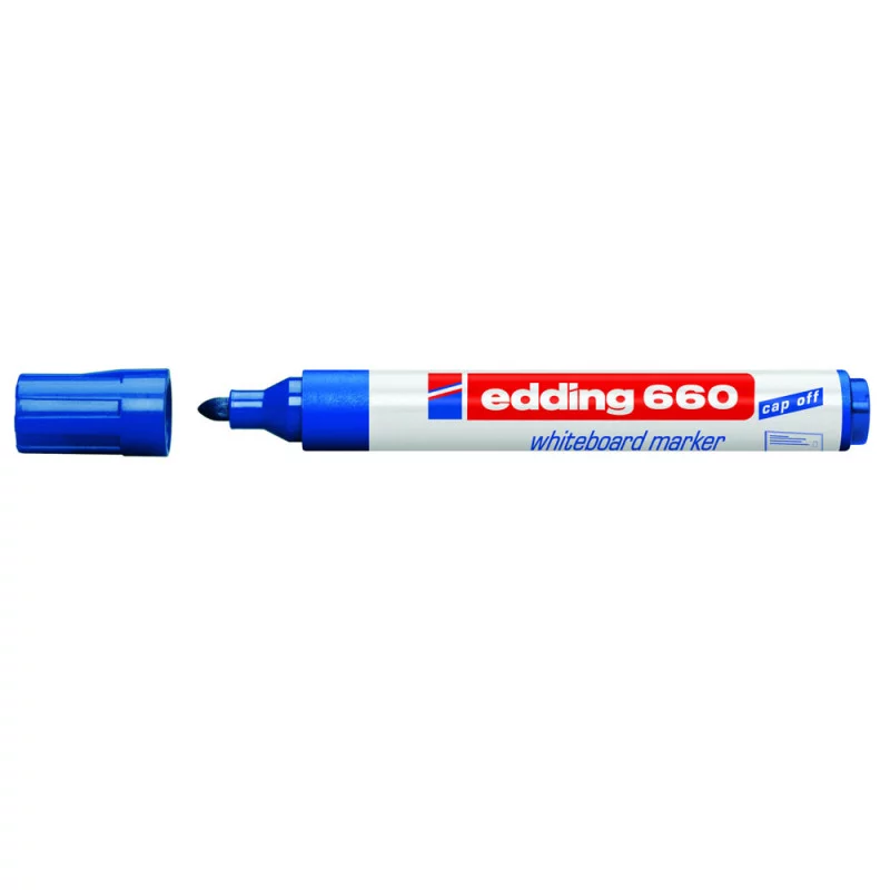Le marqueur pour tableau blanc edding 360 est un talent polyvalent. Au bureau, la planification des tâches ou la modération d'une séance de brainstorming peut être rapidement consignée par écrit. Lors de l'enseignement, le stylo aide à visualiser les faits et à la maison, vous pouvez rapidement laisser un message d'accueil. Ce marqueur pour tableau blanc est toujours prêt à l'emploi. L'encre pigmentée à faible odeur est exempte d'acétate de butyle et peut être essuyée à sec sur presque toutes les surfaces fermées telles que l'émail et la mélamine. Les couleurs noir, rouge, bleu et vert peuvent être rechargées avec la recharge d'encre edding BTK 25. Des pointes de rechange sont disponibles. Le bouchon peut être rangé au bout du canon. Le clip pratique l'empêche de rouler sur la table et le stylo peut être attaché aux vêtements et aux objets. Stocker horizontalement.