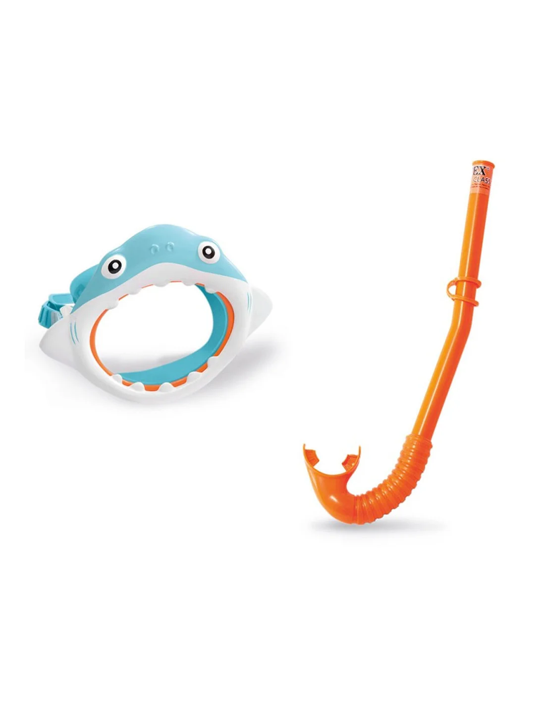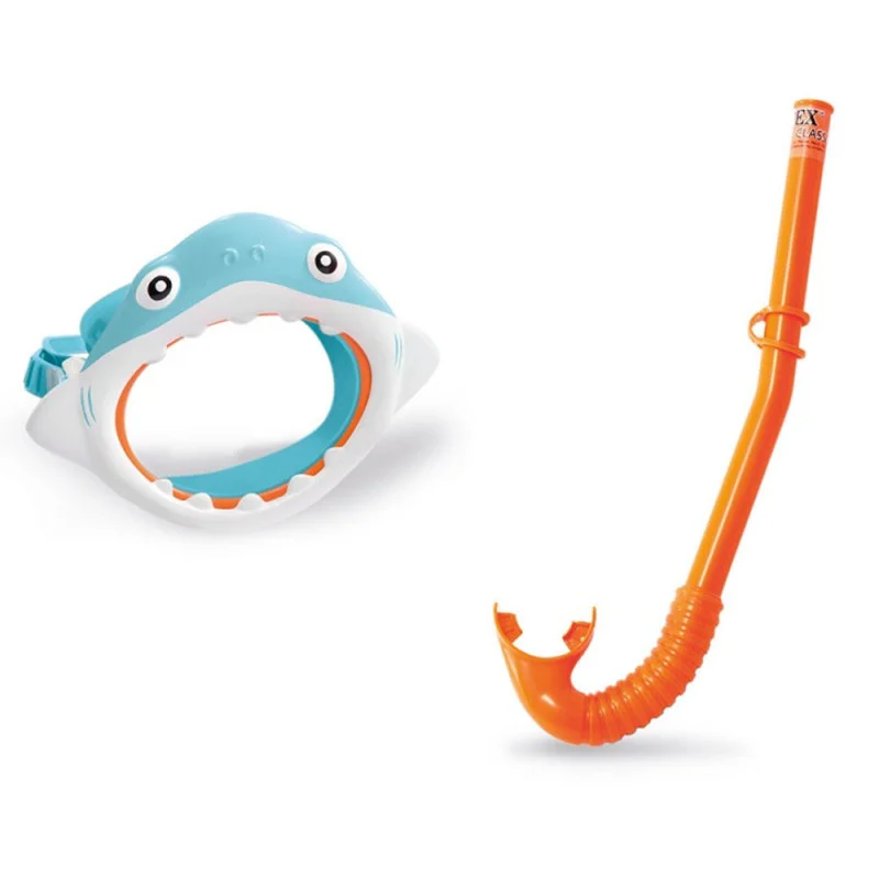 Profitez de votre piscine avec l'Intex Shark Fun Set ! Contient un masque de requin et un tuba orange. Lentilles en polycarbonate durables, embout buccal souple et souple et jupe faciale hypoallergénique douce !