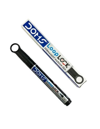 Marqueur permanent Noir Doms Loop Lock, parfait pour écrire sur toutes les surfaces : papier, plastique, métal ou carton. Pointe durable et encre résistante.