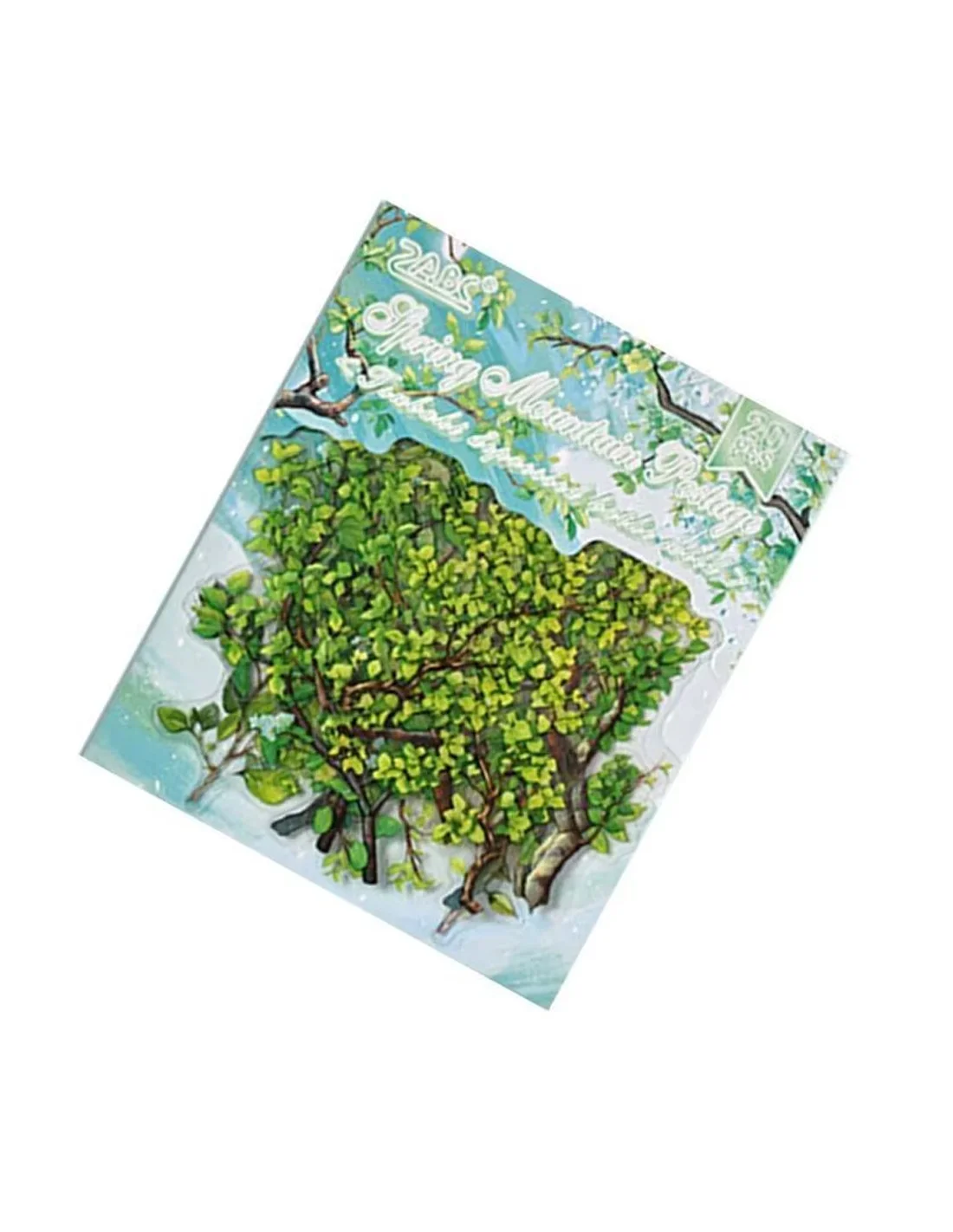 - "Spring Mountain" incarne la fraîcheur du renouveau printanier avec ses feuilles vert tendre, vert pomme et touches de vert émeraude sur fond de ciel clair.