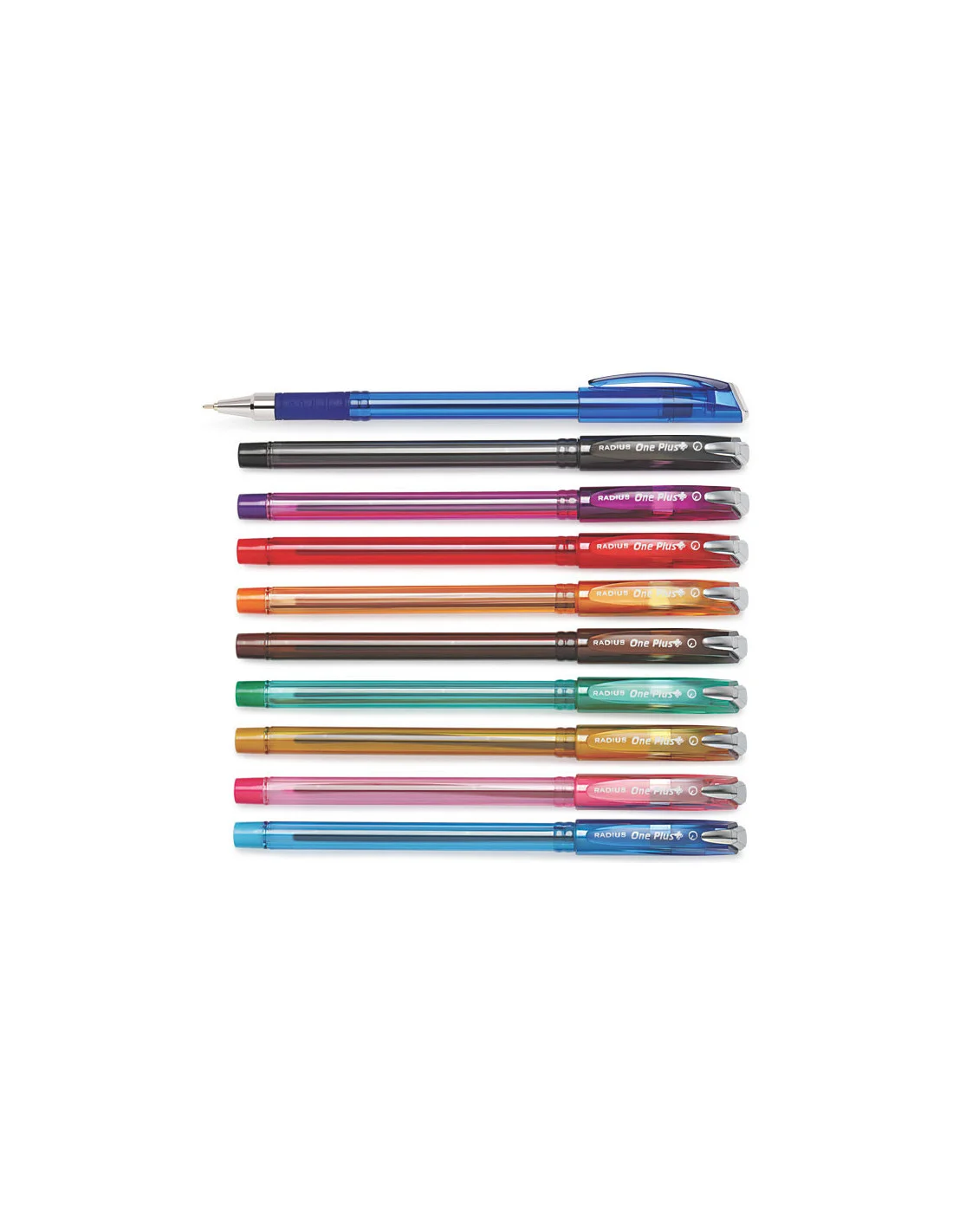 RadiusSet de 10 stylos à bille Radius One Plus – une explosion de couleurs pour écrire avec style. Encre fluide, prise en main agréable, design moderne.