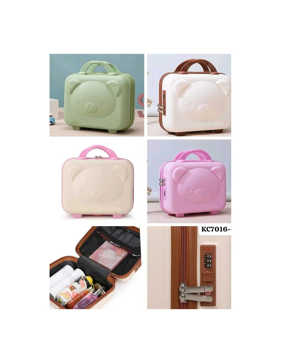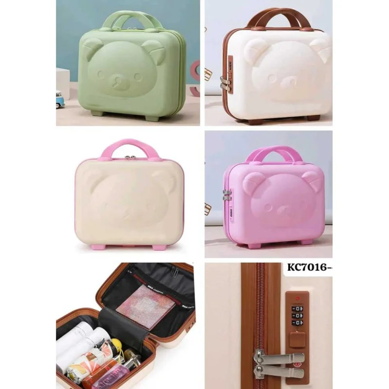 Un adorable vanity enfant rigide avec motif ourson en relief 3D, pratique, sécurisé et parfait pour accompagner les petits en voyage