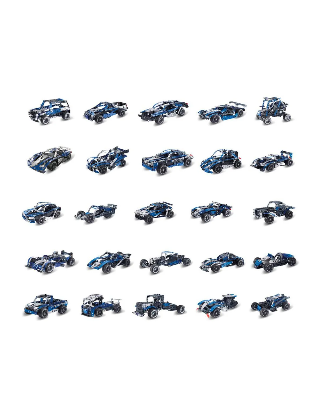 25 modèles différents à construire dont une splendide SuperCar. Roule à toute vitesse grâce à son moteur à vitesse variable 6V surpuissant.
